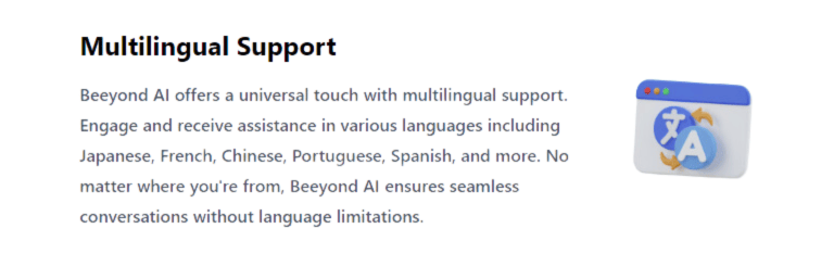 Advanced AI Capabilities (4.8/5): Beeyond AI stands out with its advanced AI capabilities. From natural language processing to data analytics and machine learning, the platform offers a robust toolbox that can transform the way businesses operate. With these features, you can make data-driven decisions, automate repetitive tasks, and improve customer interactions.